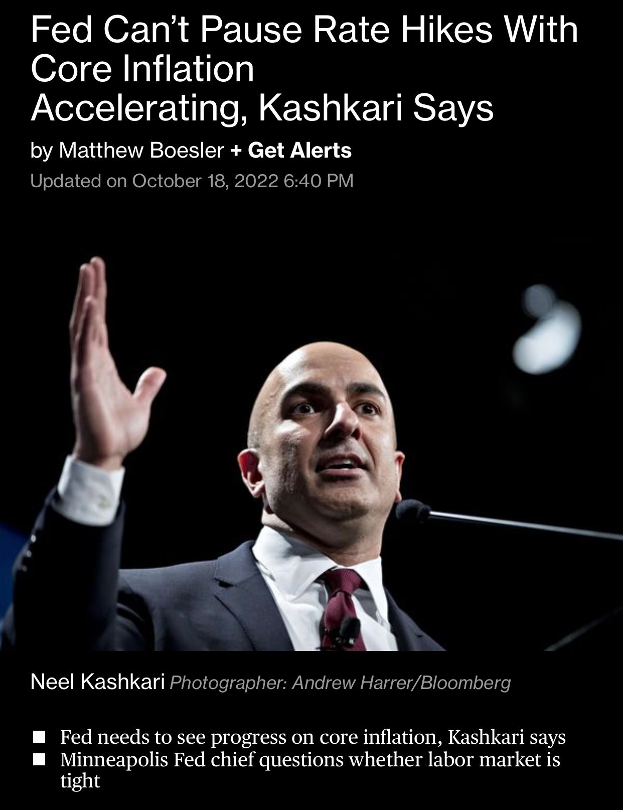 Said differently, the robotic process they must follow, forces them to keep raising rates until they see a red flag from labor. The problem with this approach is the labor market won't show any red flags anytime soon (especially considering how they calculate the labor force #s).